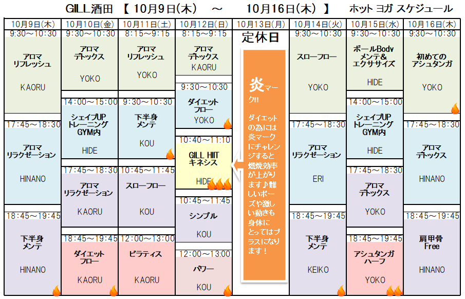 レッスン強度の見方 ☆☆続いてホットヨガプログラム各種☆☆