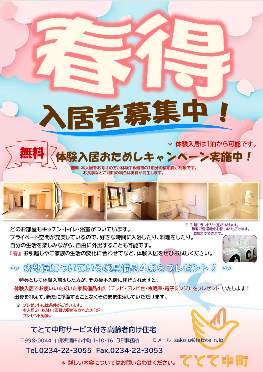 2026.春の無料体験入居おためしキャンペーンを実施中です。